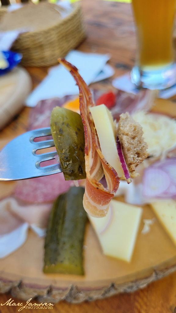 Dann setzten wir uns zusammen, genossen die Sonne und gönnten uns ein leckeres Bier. Dazu gab es eine köstliche Käseplatte mit Brot, Schinken und Gemüse – genau das Richtige nach der Anstrengung. Wir saßen lange beisammen, redeten, lachten und genossen einfach den Moment.