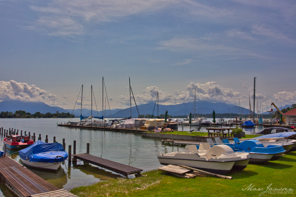 Heute blieb das Wohnmobil stehen. Stattdessen sattelten wir die Fahrräder und machten uns auf zu einer Tour am Chiemsee entlang. Der See zeigte sich von seiner besten Seite: glasklares Wasser, leichter Wind, die Sonne im Rücken.
